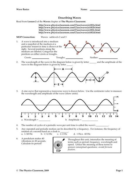 Read Answer Key Physics Classroom Describing Wave Basics Kindle Editon